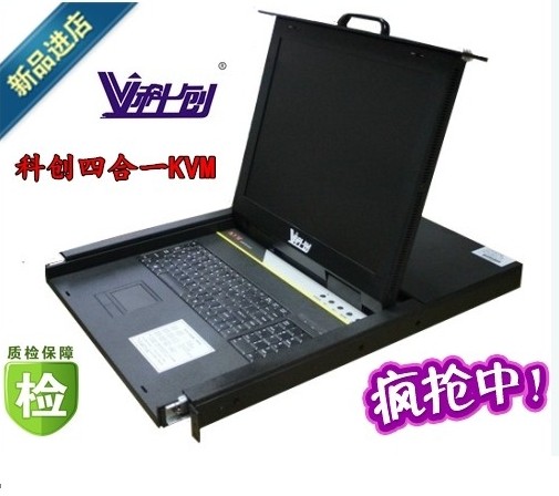 V科创 KC-1716整合LCD、超薄键盘、Touch Pad触摸鼠标板,集成在1U高度单元内, 抽屉式安装方式,彻底解决空间不足的问题。采用高品质A级17”TFT LCD、分辨率最高可达1600*1280,与标准键盘、显示器、鼠标相比,可节省85%的空间,内置16口切换器.OSD菜单使切换及调整更为方便。