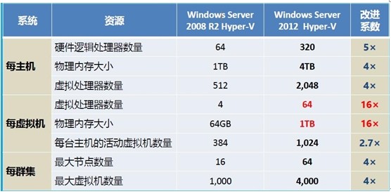 3、?Hyper-V 主机规模及其对规模递增型运算职能的支持:Hyper-V 主机规模最大可扩展到 320个逻辑处理器和 4TB 内存;虚拟机规模最大可扩展到 64个虚拟处理器和 1TB 内存